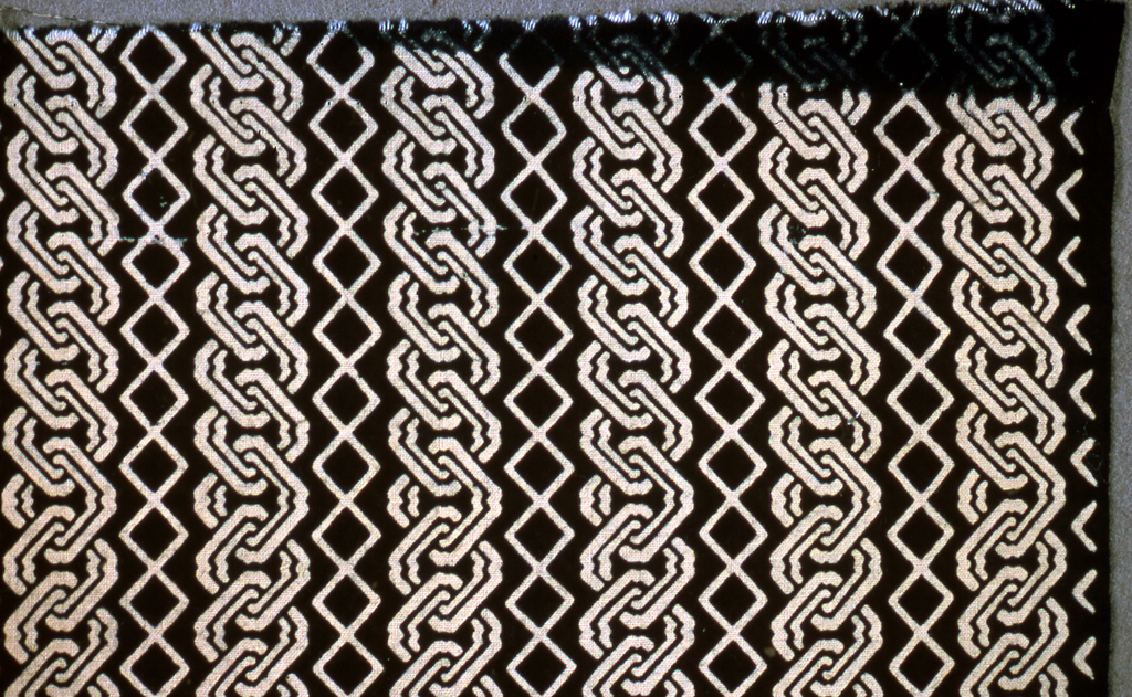 This is a Textile. It is dated 20th century and we acquired it in 1975. Its medium is cotton and its technique is stencil resist. It is a part of the Textiles department.