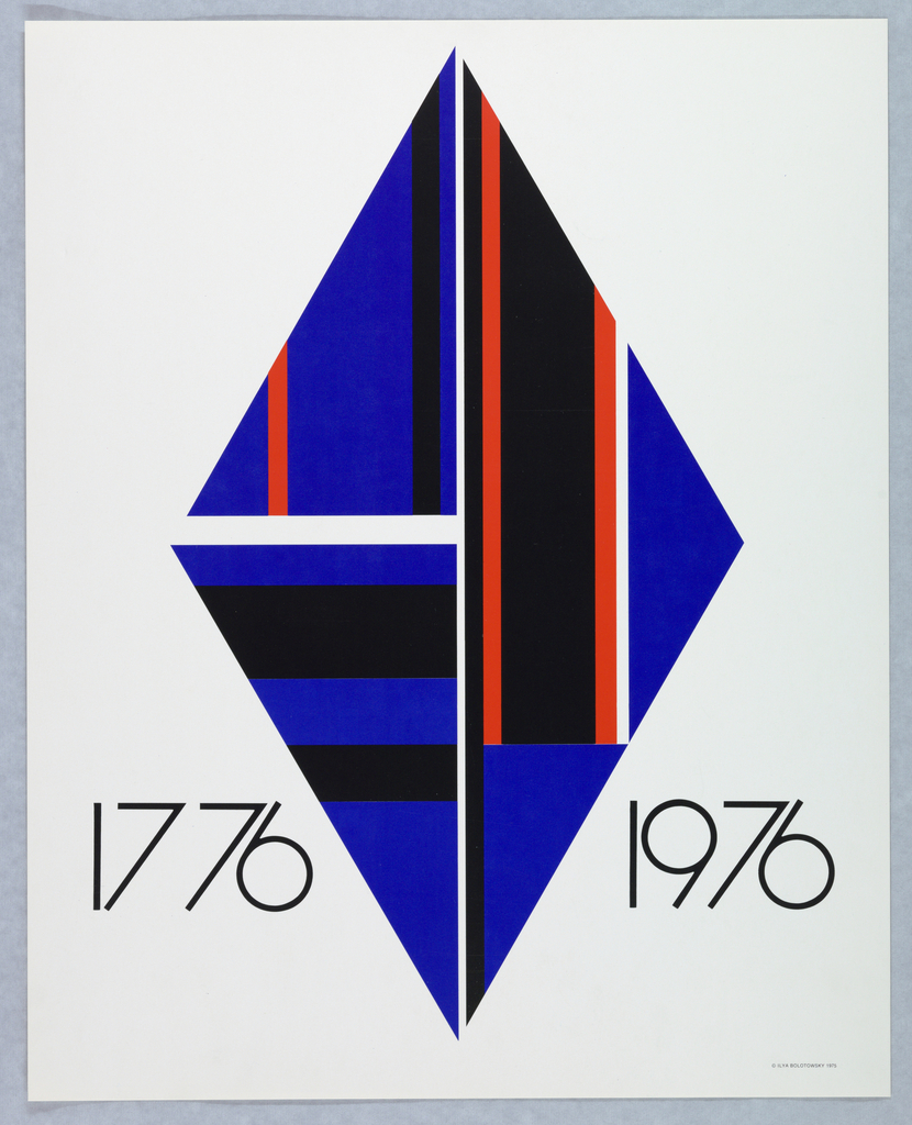 Printed in black, surrounding lower portion of diamond: 1776 1976; in black, bottom right: © ILYA BOLOTOWSKY 1975