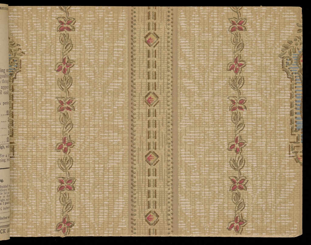 This is a Sample book. It was manufactured by Sears, Roebuck and Co.. It is dated 1921 and we acquired it in 1975. Its medium is machine-printed paper, embossed. It is a part of the Wallcoverings department.