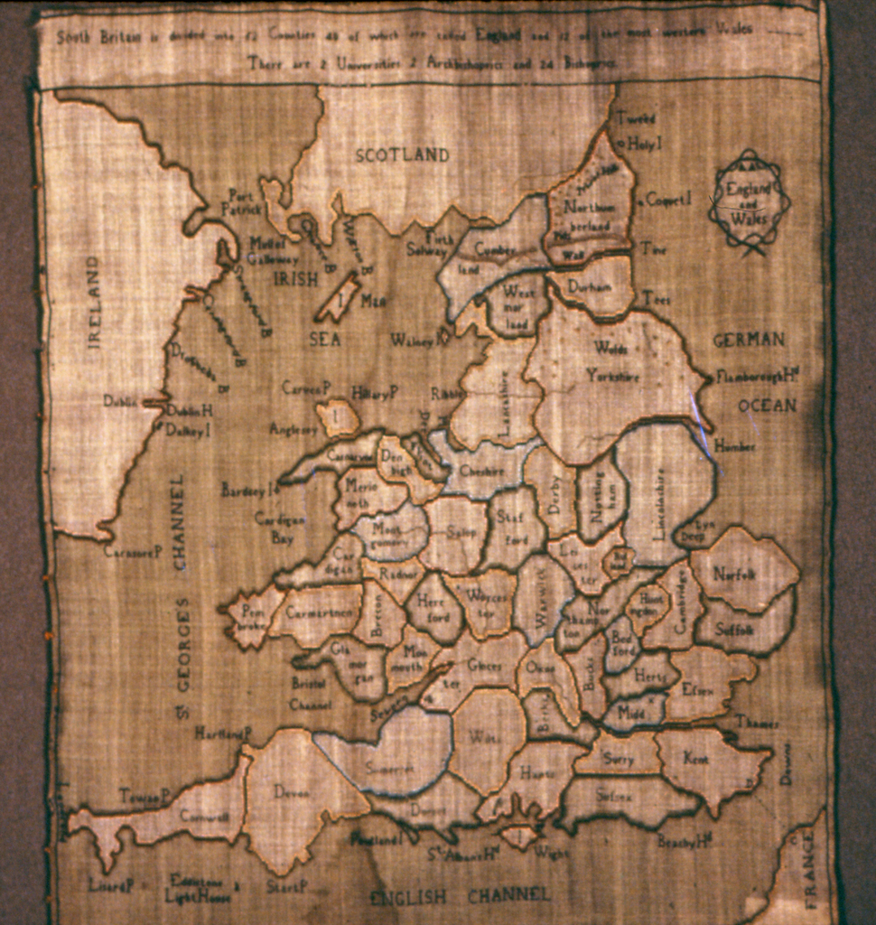 <ref name=CH>{{cite web |url=https://www-6.collection.cooperhewitt.org/objects/18489503/ |title=Map Sampler (England) |author=Cooper Hewitt, Smithsonian Design Museum |accessdate=20 December 2025 |publisher=Smithsonian Institution}}</ref>