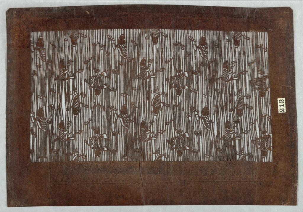 <ref name=CH>{{cite web |url=https://www-6.collection.cooperhewitt.org/objects/18490109/ |title=Stencil, Carp Ascending a Waterfall |author=Cooper Hewitt, Smithsonian Design Museum |accessdate=20 December 2025 |publisher=Smithsonian Institution}}</ref>