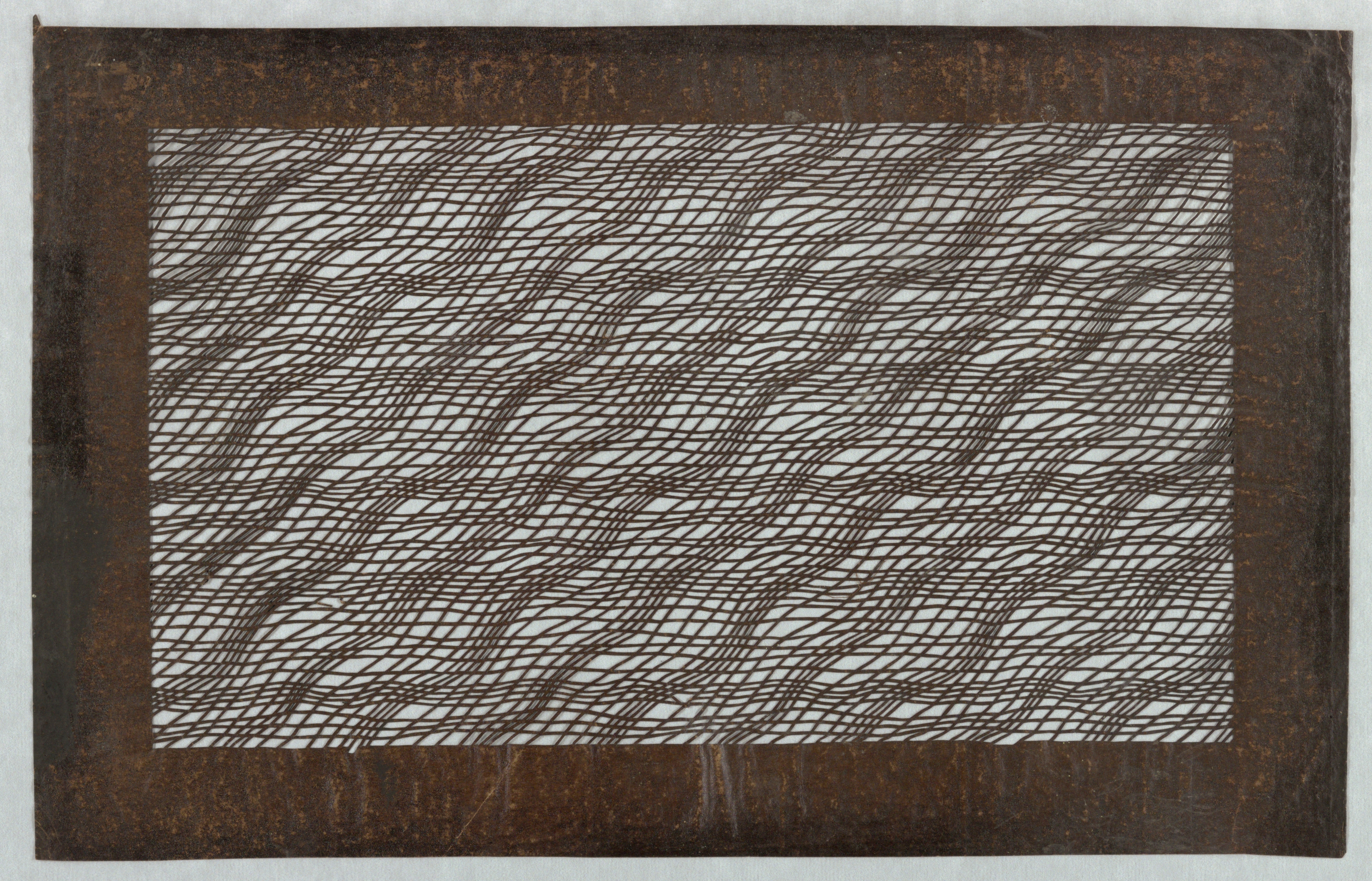 Katagami, Undulating Lattice Motif; Japan; mulberry paper (kozo washi) treated with fermented persimmon tannin (kakishibu), and silk threads (itoire); Gift of Helen Snyder; 1976-103-66