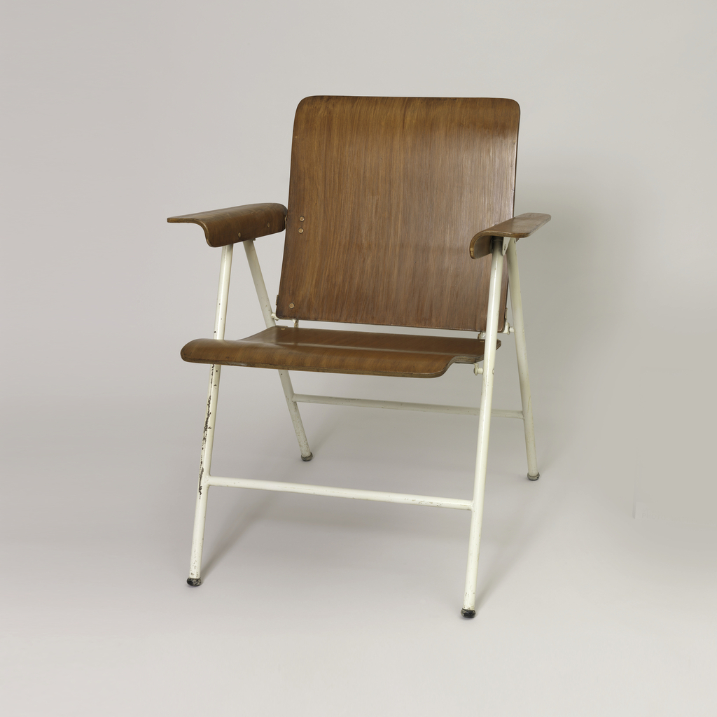 Chair (USA); Designed by Russel Wright ((American, 1904–1976)); wood (birch), metal; H x W x D (open): 77.3 x 63.5 x 67 cm (30 7/16 x 25 x 26 3/8 in.) H x W x D (folded): 95 x 63.2 x 14 cm (37 3/8 x 24 7/8 x 5 1/2 in.); Gift of Russel Wright; 1976-15-3
