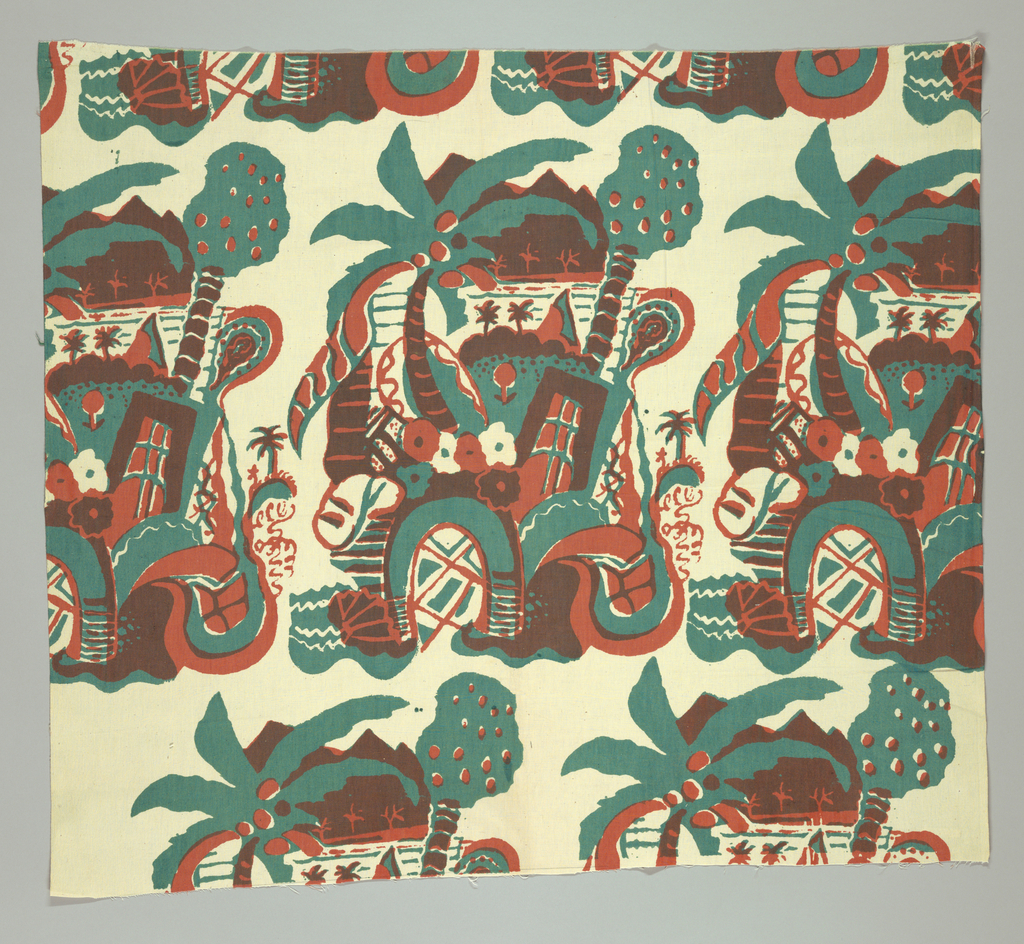 Textile (USA); Made by A. Nedby (American); Student at The Educational Alliance; cotton; H x W: 77.2 x 87.6 cm (30 3/8 x 34 1/2 in.) Repeat H x W: 52.1 x 38.1 cm (20 1/2 x 15 in.); Gift of the Estate of Ella Ostrowsky; 1976-98-33-b