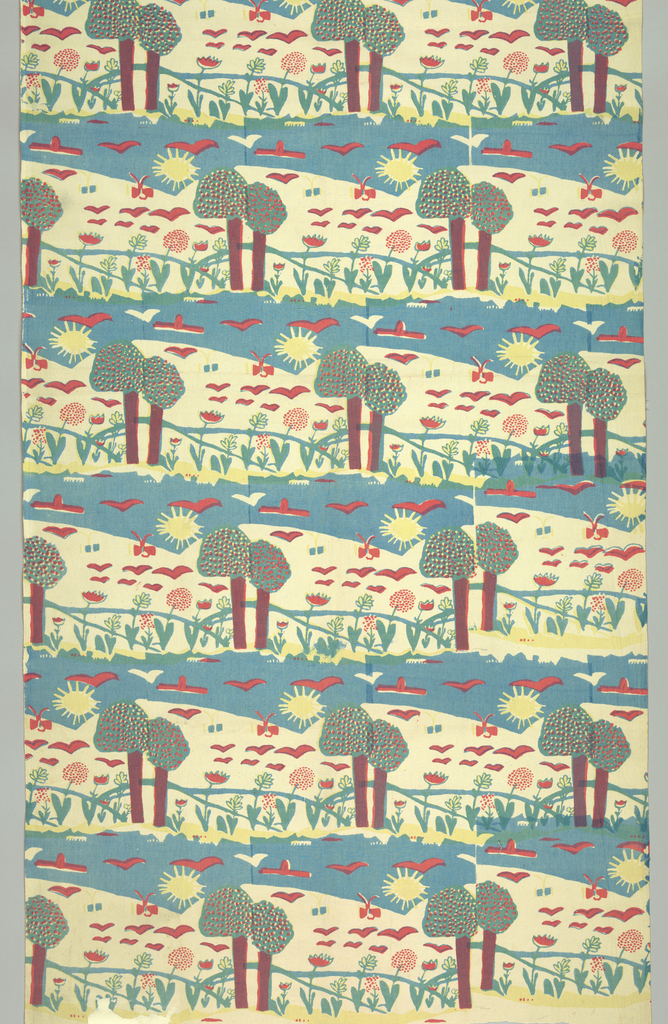 Textile (USA); Student of Ray Euffa; Student at The Educational Alliance; Made by Margarette Lato (American); cotton; H x W: 189.5 x 87.3 cm (74 5/8 x 34 3/8 in.) Repeat H x W: 25.4 x 31.8 cm (10 x 12 1/2 in.); Gift of the Estate of Ella Ostrowsky; 1976-98-39