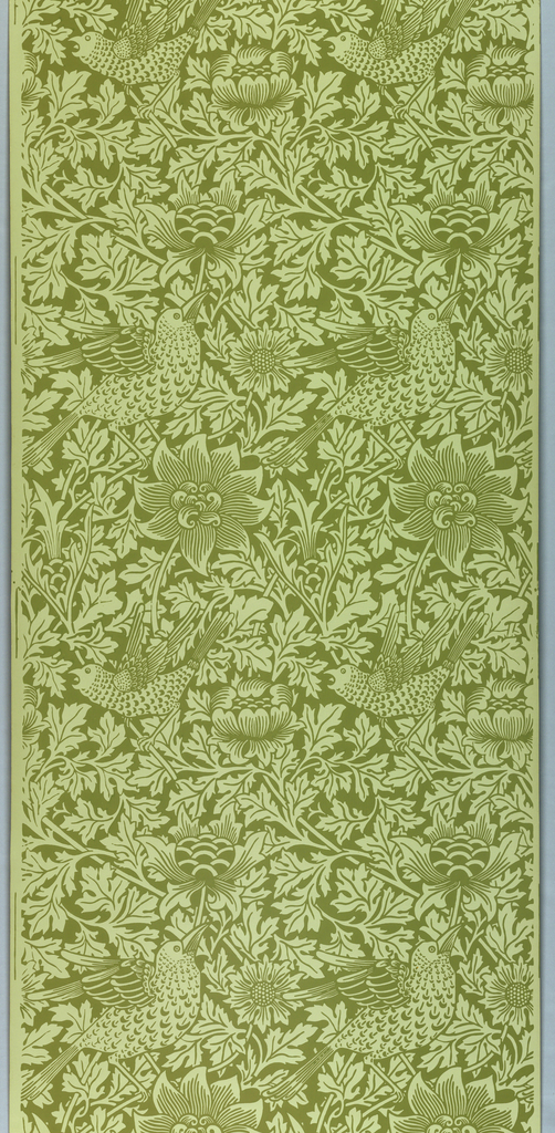 This is a Sidewall. It was designed by Morris & Co.. It is dated 1972 and we acquired it in 1977. Its medium is block printed on paper. It is a part of the Wallcoverings department.