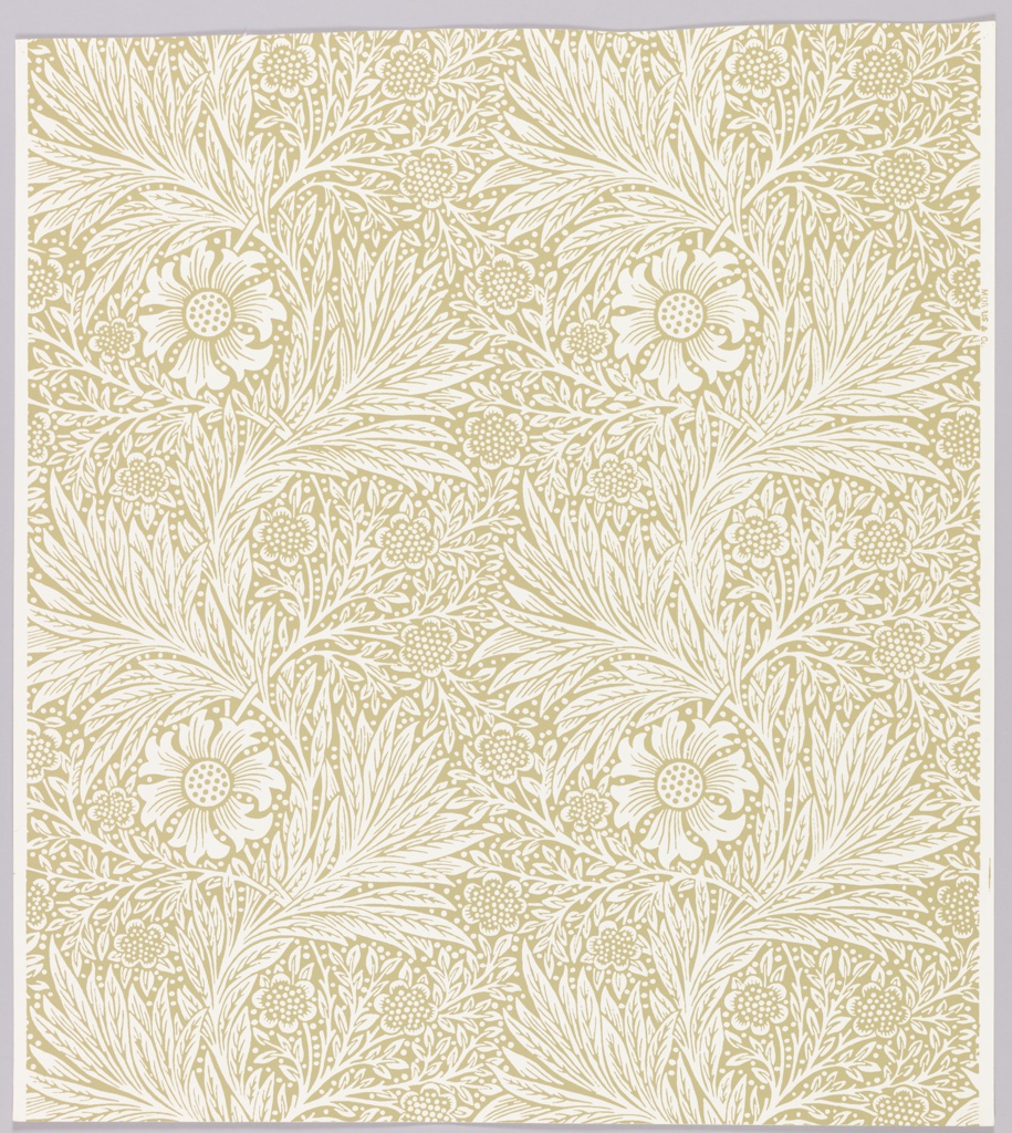 Sidewall, Marigold; Made by Morris & Co. (United Kingdom); England; block-printed on paper; 60 x 56 cm (23 5/8 x 22 1/16 in.) ; Gift of Clifford Murvine, Reed Wallpaper Company; 1977-28-2-a/g