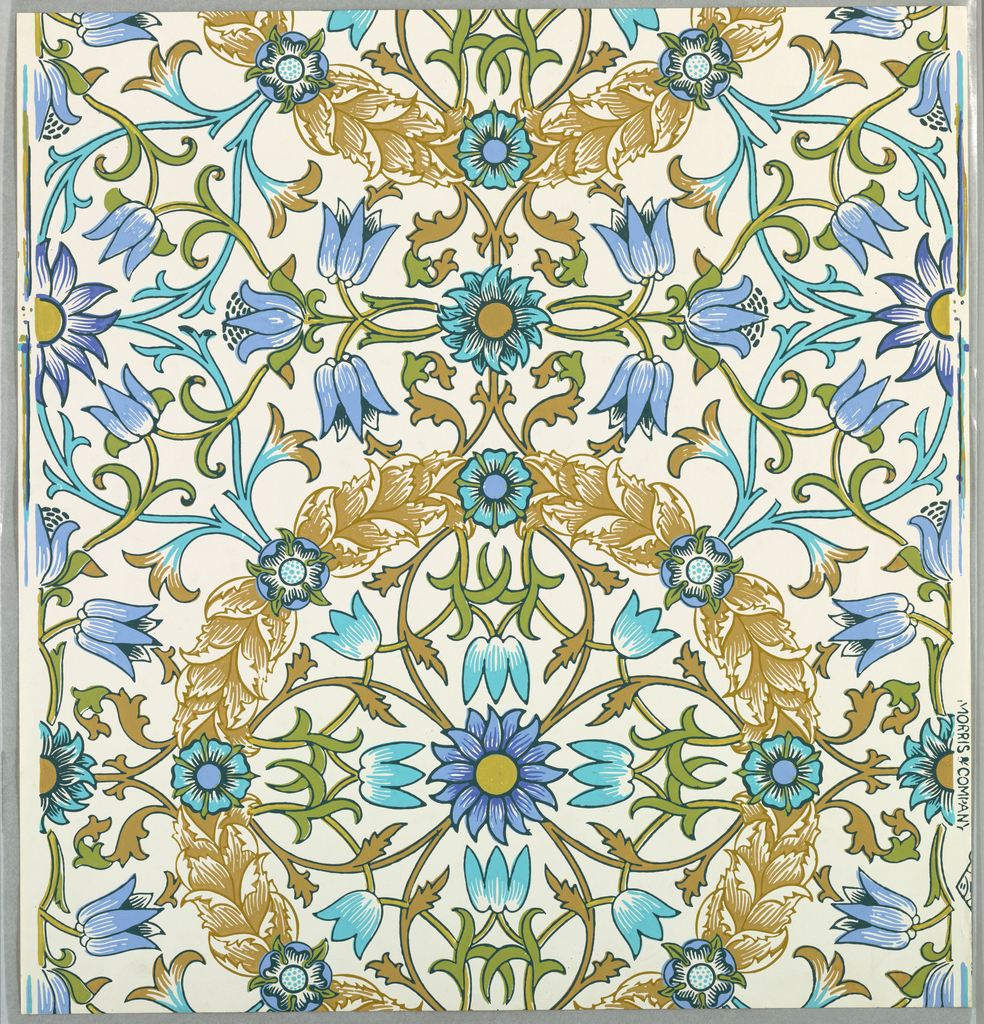 Ceiling Paper, The Wreath; Manufactured by Morris & Co. (United Kingdom); England; block-printed on paper; 59 x 56.5 cm (23 1/4 x 22 1/4 in.); Gift of Clifford Murvine, Reed Wallpaper Company; 1977-31-9-a/d