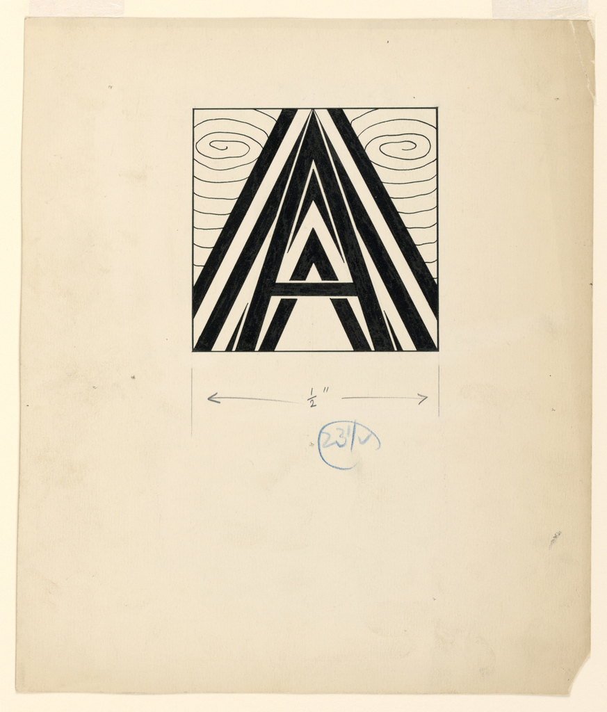 Drawing, Design for the Letter A, Illustration for Eolus (III, No. 1, November 1923, p. 3)