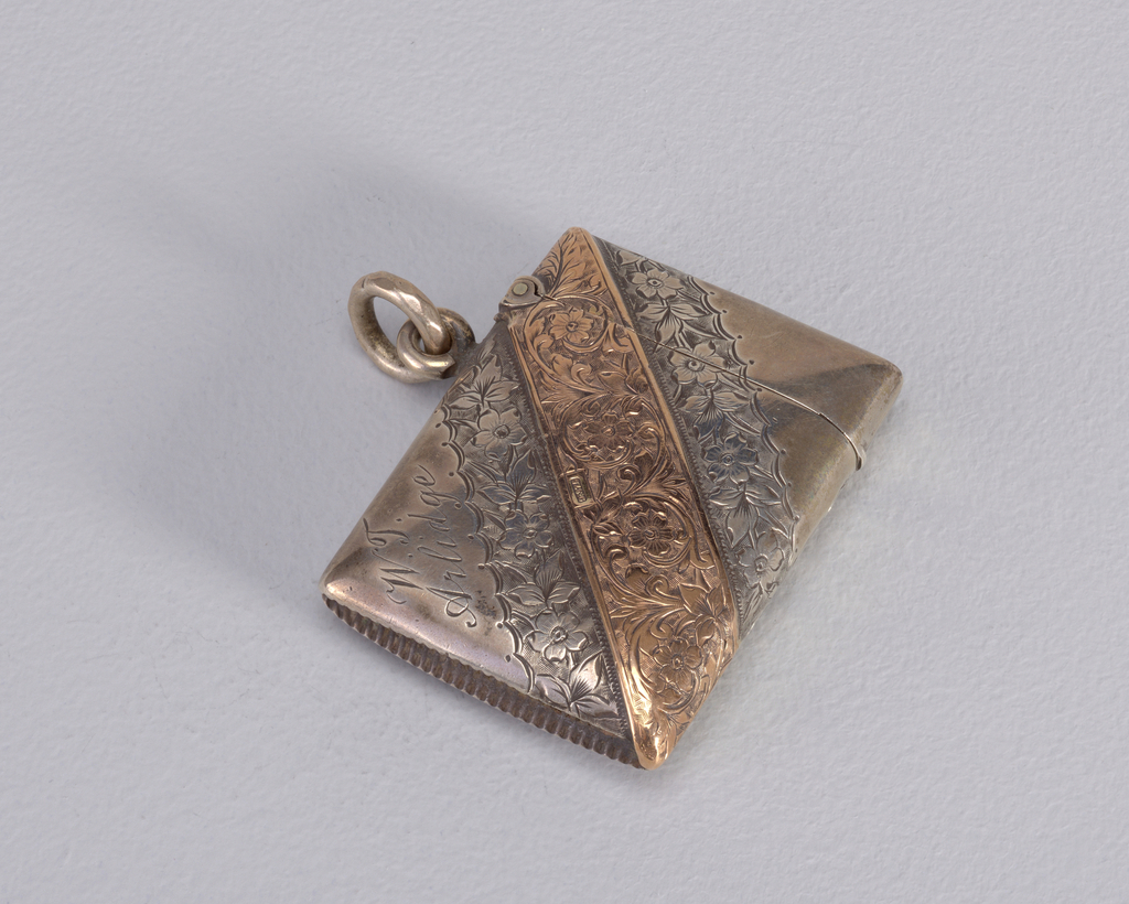 Matchsafe; gold; Overall: 4.8 x 4.2 x 0.9 cm (1 7/8 x 1 5/8 x 3/8 in.); Gift of Stephen W. Brener and Carol B. Brener; 1978-146-1085