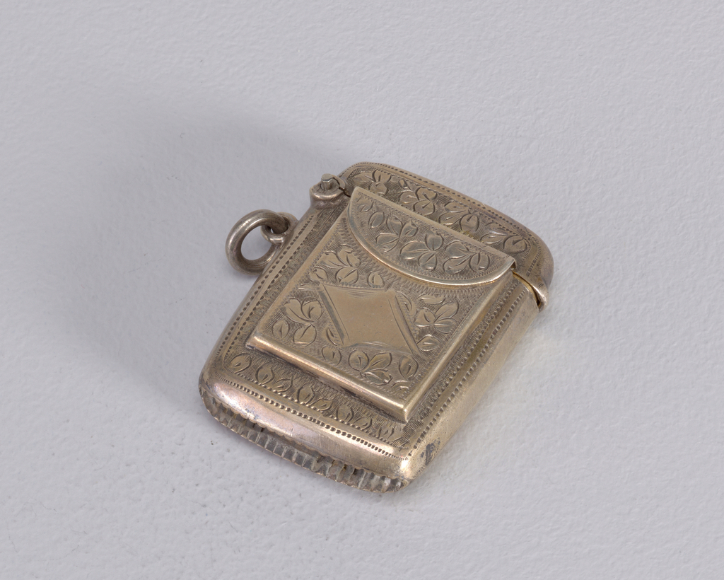 Matchsafe; silver; Overall: 4.5 x 3.7 x 1.2 cm (1 3/4 x 1 7/16 x 1/2 in.); Gift of Stephen W. Brener and Carol B. Brener; 1978-146-1241