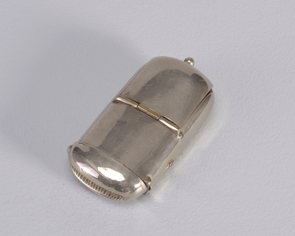 This is a Matchsafe. We acquired it in 1978. Its medium is metal. It is a part of the Product Design and Decorative Arts department.