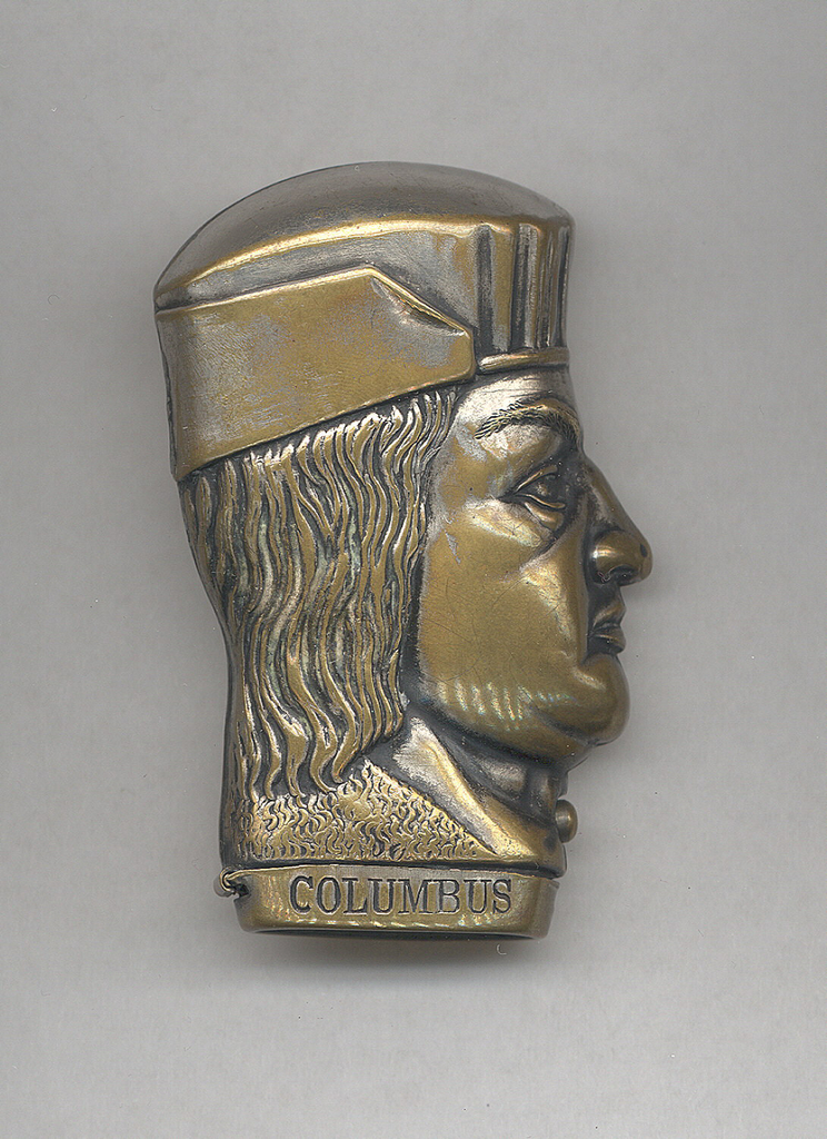 Christopher Columbus Matchsafe; USA; plated brass; 6.6 x 4.6 x 2 cm (2 5/8 x 1 13/16 x 13/16 in. ); Gift of Stephen W. Brener and Carol B. Brener; 1978-146-261