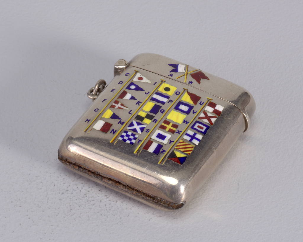 This is a Matchsafe. We acquired it in 1978. Its medium is silver. It is a part of the Product Design and Decorative Arts department.