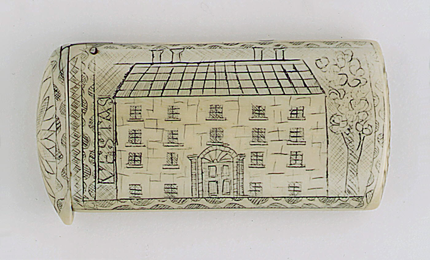 Georgian House Facade Matchsafe; possibly USA; ivory, pigment; 2.8 x 5.3 x .9 cm (1 1/8 x 2 1/16 x 3/8 in. ); Gift of Stephen W. Brener and Carol B. Brener; 1978-146-504