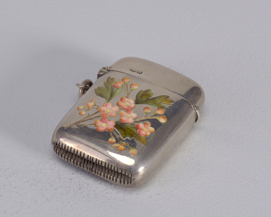 This is a Matchsafe. We acquired it in 1978. Its medium is silver. It is a part of the Product Design and Decorative Arts department.
