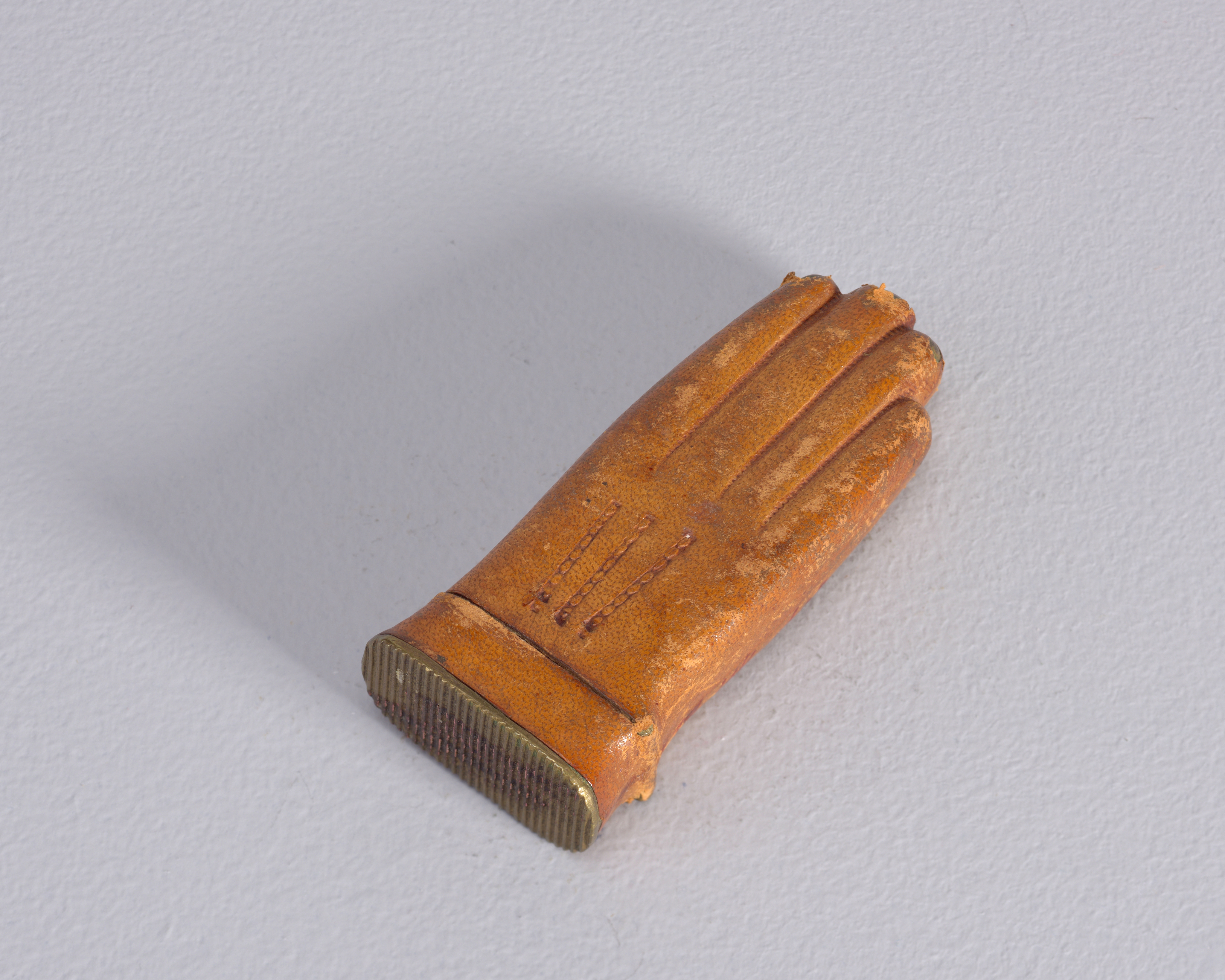 Leather Glove Matchsafe; brass, leather; 6.1 x 2.5 x 1.3 cm (2 3/8 x 1 x 1/2 in. ); Gift of Stephen W. Brener and Carol B. Brener; 1978-146-600