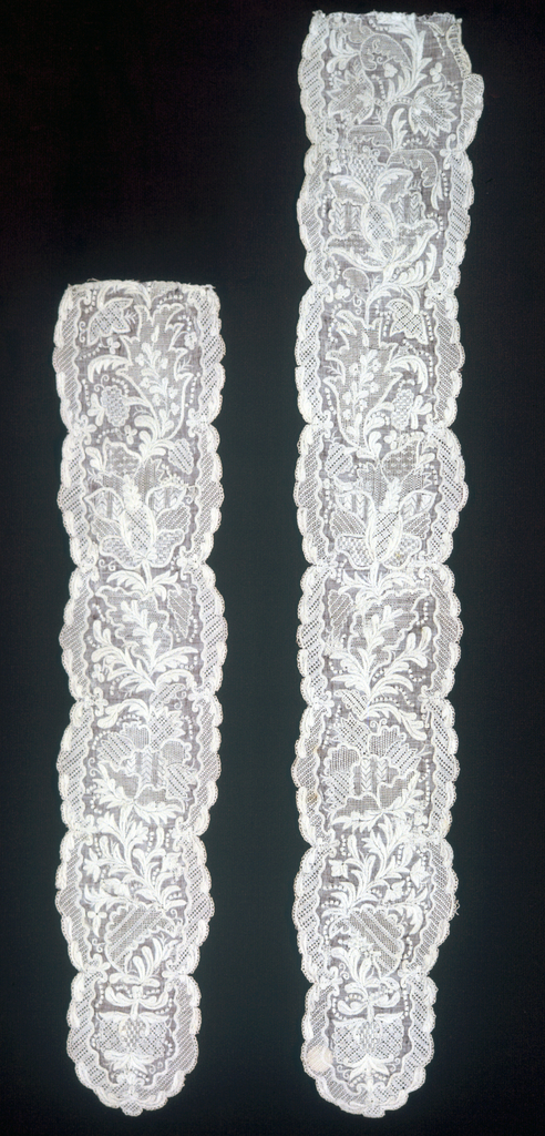 Cap Streamers; linen; H x W (a): 56.5 × 9.5 cm (22 1/4 × 3 3/4 in.) H x W (b): 43 × 9 cm (16 15/16 × 3 9/16 in.); Gift of Mrs. Howard J. Sachs and Mr. Peter G. Sachs in memory of Miss Edith L. Sachs; 1978-168-23-a,b