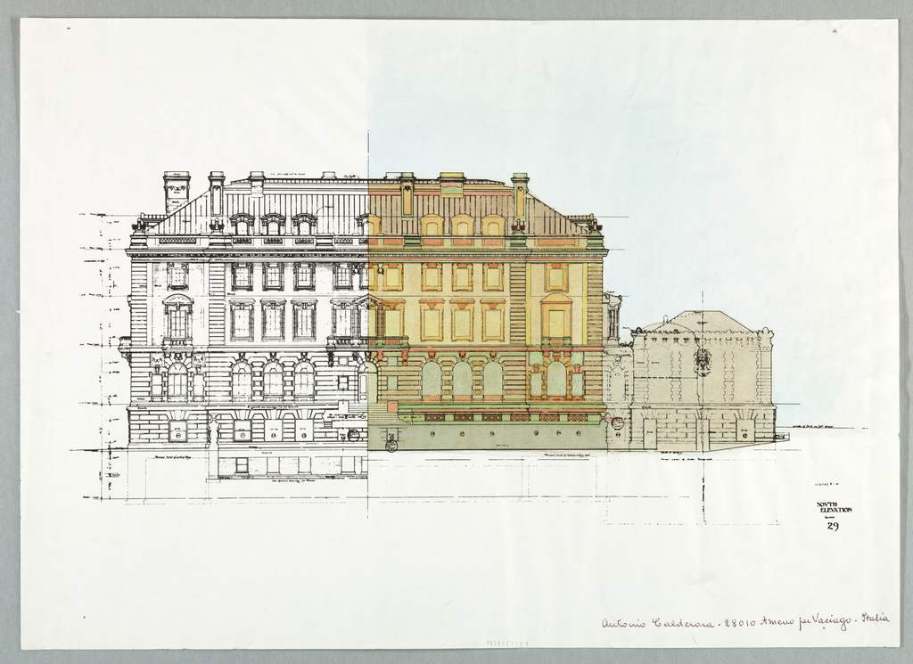 Drawing, Carnegie Mansion Embellishment; Antonia Calderone; Made for Cooper Hewitt, Smithsonian Design Museum (United States); watercolor and pencil; Gift of Antonia Calderone; 1978-24-1