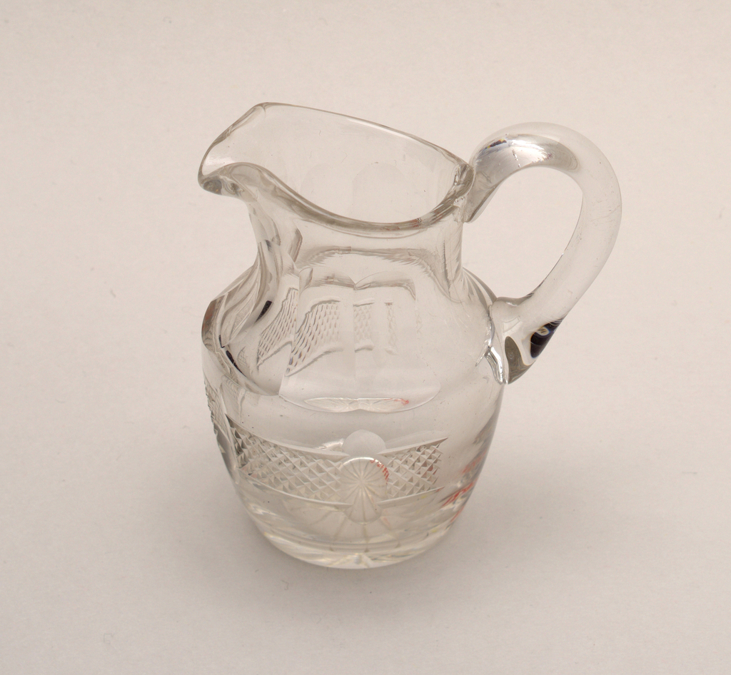 This is a cruet. It is dated 1872–1922 and we acquired it in 1979. Its medium is glass. It is a part of the Product Design and Decorative Arts department.
