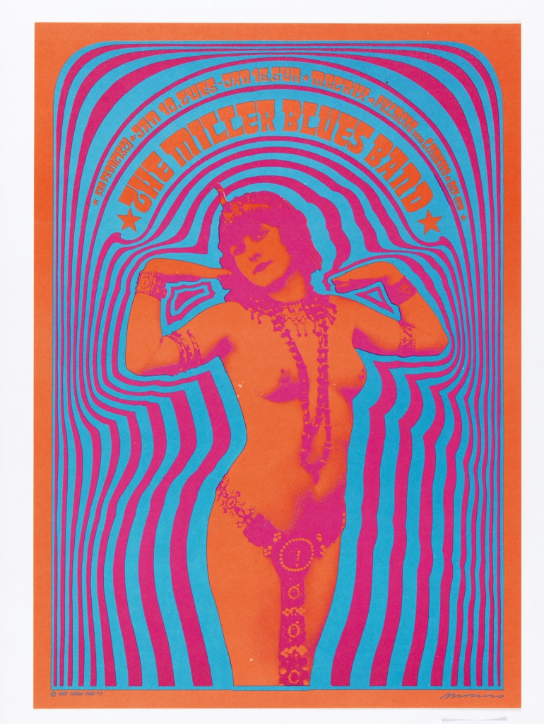 Poster, The Miller Blues Band; Designed by Victor Moscoso (Spanish, active USA, b.1936); Printed by Neon Rose; offset lithograph on white wove paper; 50.3 x 35.8 cm (19 13/16 x 14 1/8 in.); Gift of Mr. and Mrs. Leslie J. Schreyer; 1979-34-38