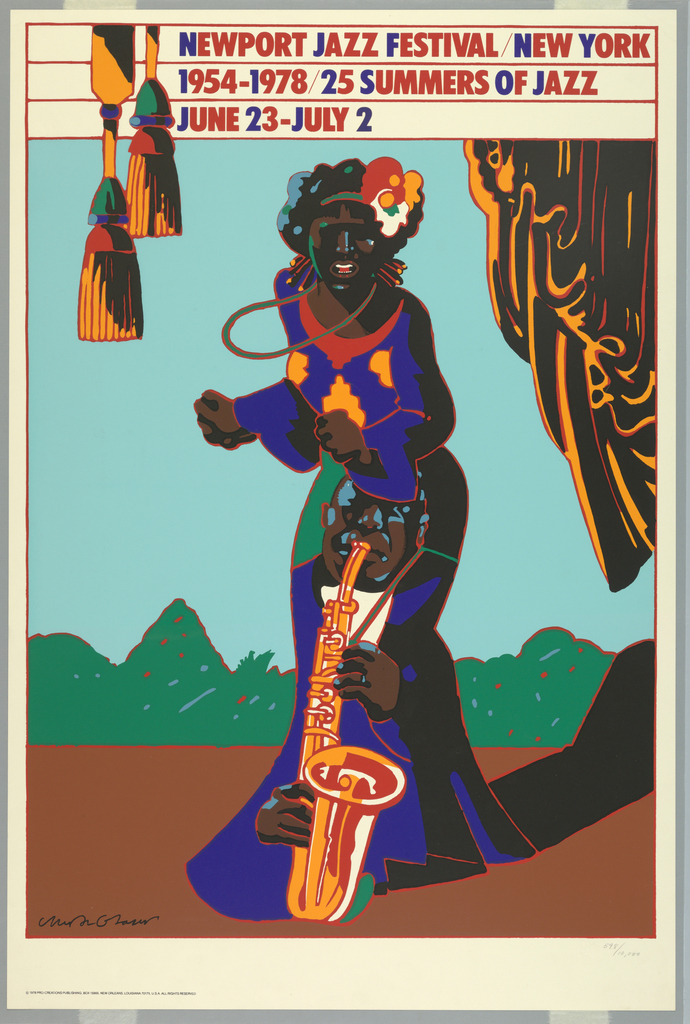 <ref name=CH>{{cite web |url=https://www-6.collection.cooperhewitt.org/objects/18498103/ |title=Poster, Newport Jazz Festival |author=Cooper Hewitt, Smithsonian Design Museum |accessdate=20 December 2025 |publisher=Smithsonian Institution}}</ref>