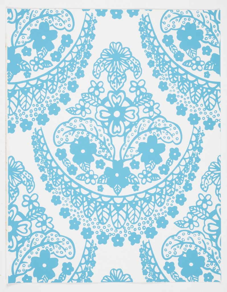 This is a Sample book. It was manufactured by F. Schumacher & Co.. It is dated 1978 and we acquired it in 1979. Its medium is screen printed on paper, cotton. It is a part of the Wallcoverings department.