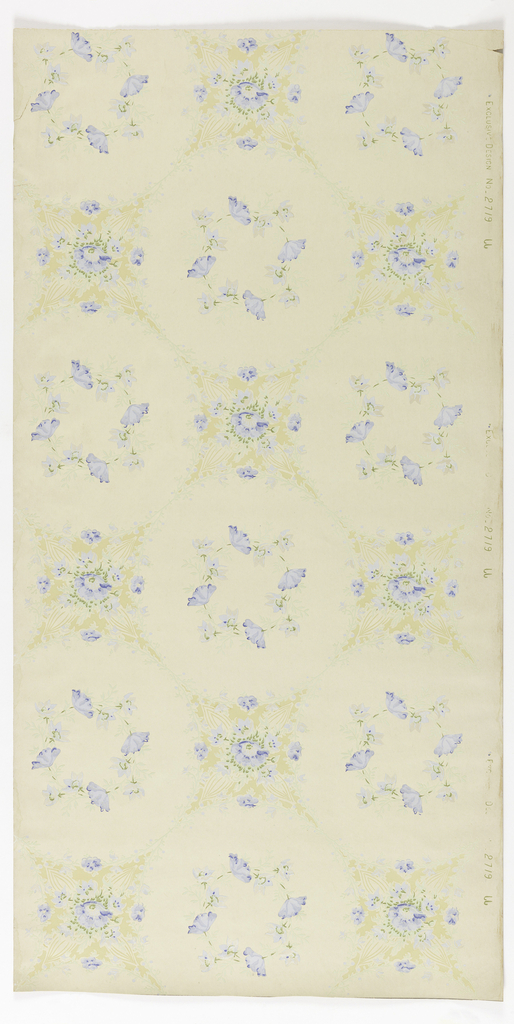 This is a Ceiling paper. It was distributed by S.A. Maxwell & Co.. It is dated 1905–1915 and we acquired it in 1979. Its medium is machine-printed paper, liquid mica. It is a part of the Wallcoverings department.