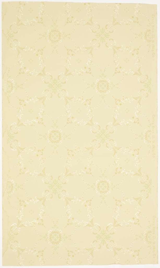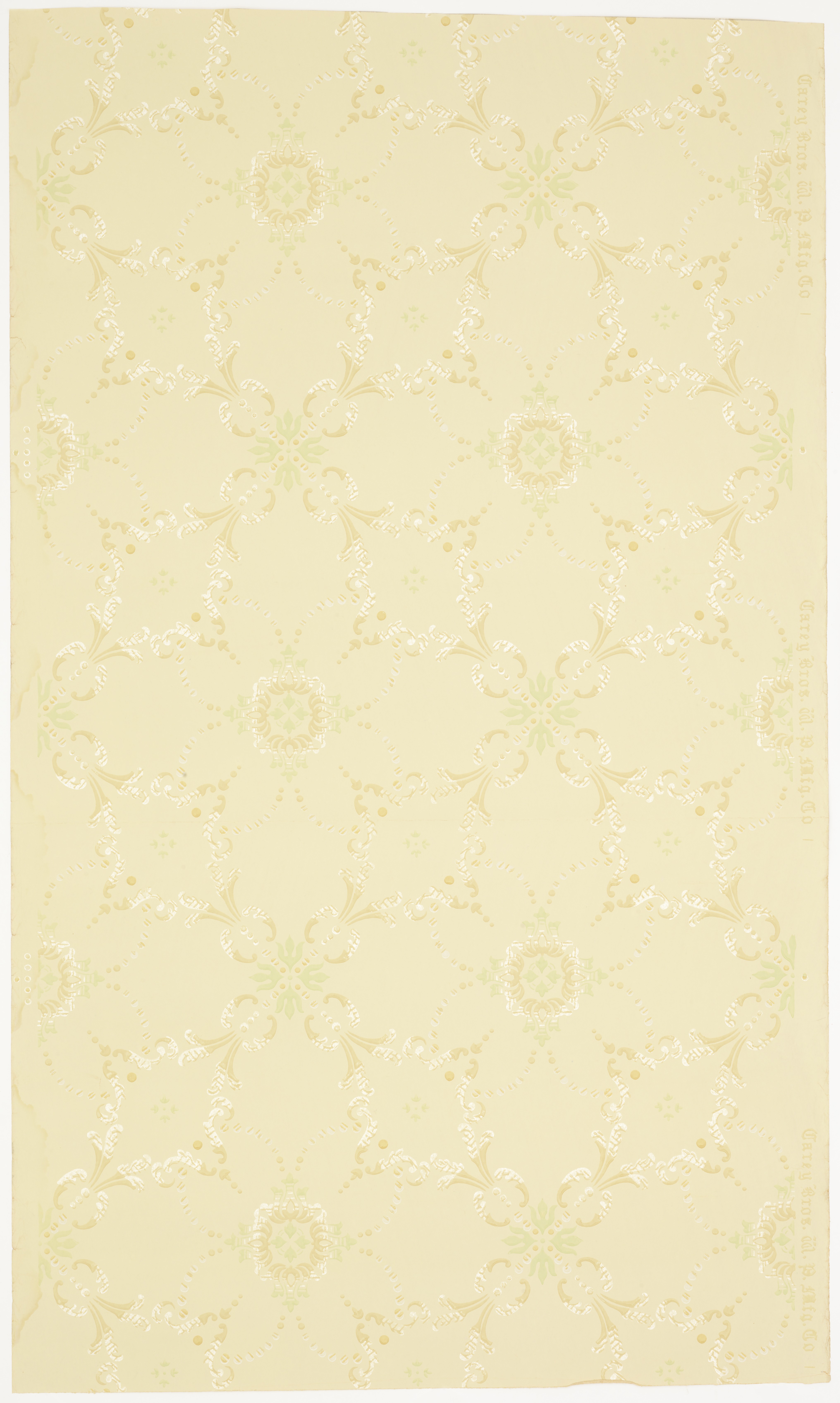 This is a Ceiling paper. It was manufactured by Carey Bros. W.P. Mfg. Co.. It is dated 1905–1915 and we acquired it in 1979. Its medium is machine-printed paper, liquid mica. It is a part of the Wallcoverings department.