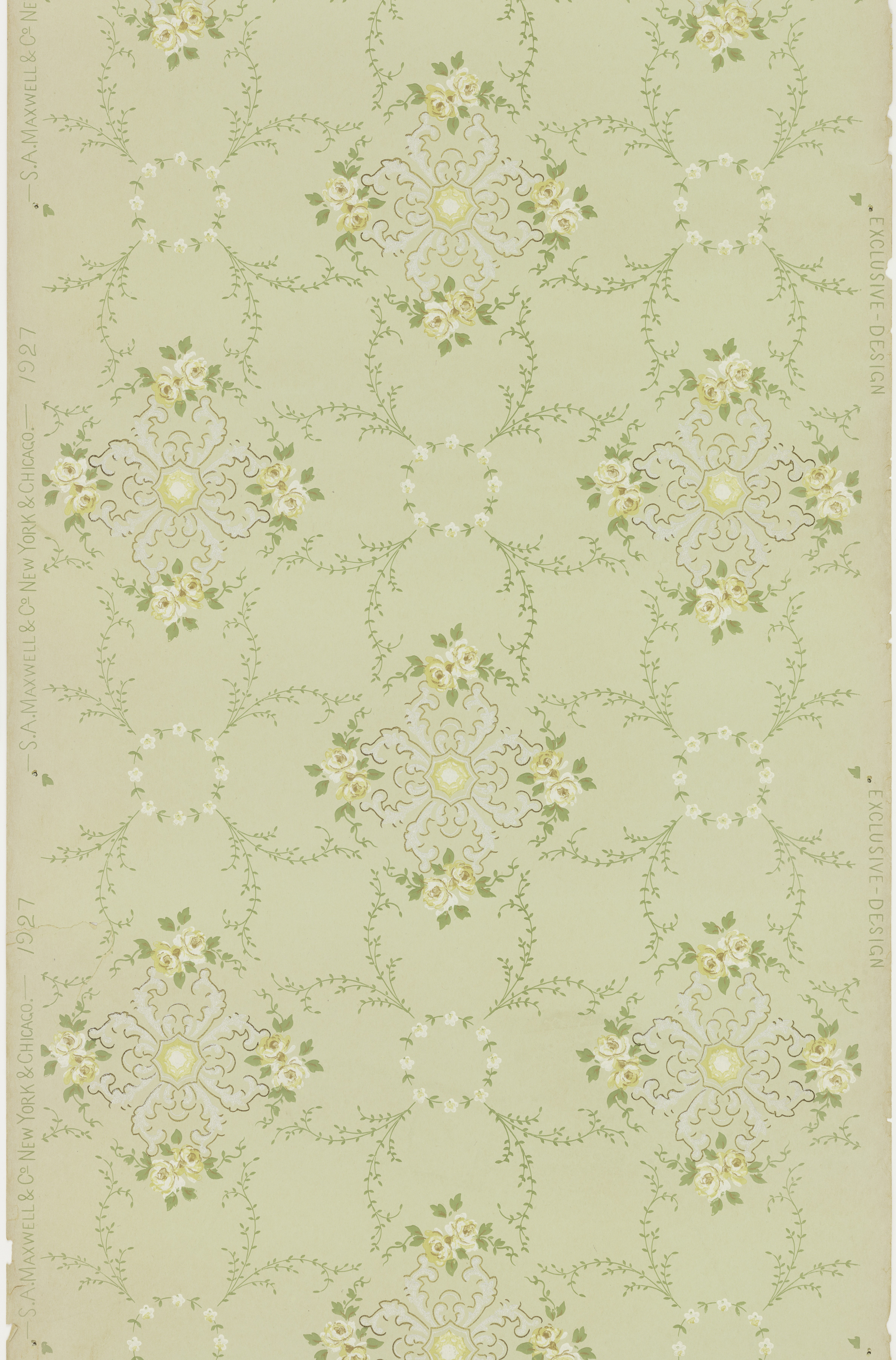 This is a Ceiling paper. It was manufactured by Maxwell & Co., S.A.. It is dated 1905–1915 and we acquired it in 1979. Its medium is machine-printed paper, liquid mica. It is a part of the Wallcoverings department.