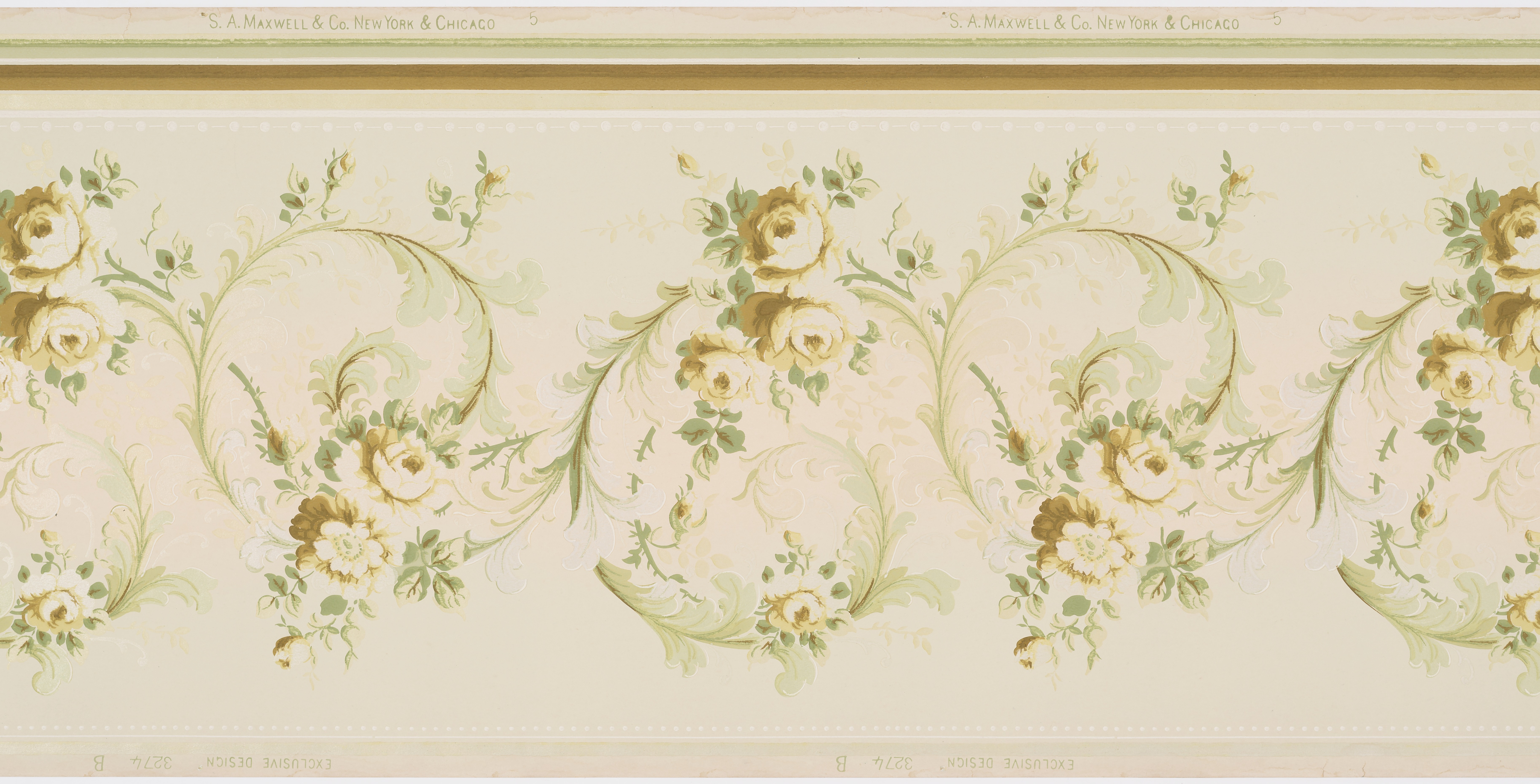 This is a frieze. It was distributed by Maxwell & Co., S.A.. It is dated 1905–1915 and we acquired it in 1979. Its medium is machine-printed paper, liquid mica. It is a part of the Wallcoverings department.