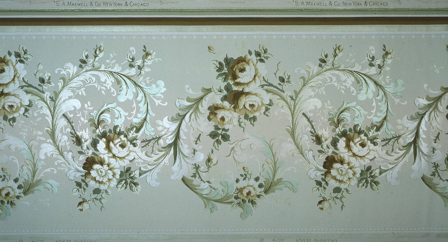 This is a frieze. It was distributed by Maxwell & Co., S.A.. It is dated 1905–1915 and we acquired it in 1979. Its medium is machine-printed paper, liquid mica. It is a part of the Wallcoverings department.