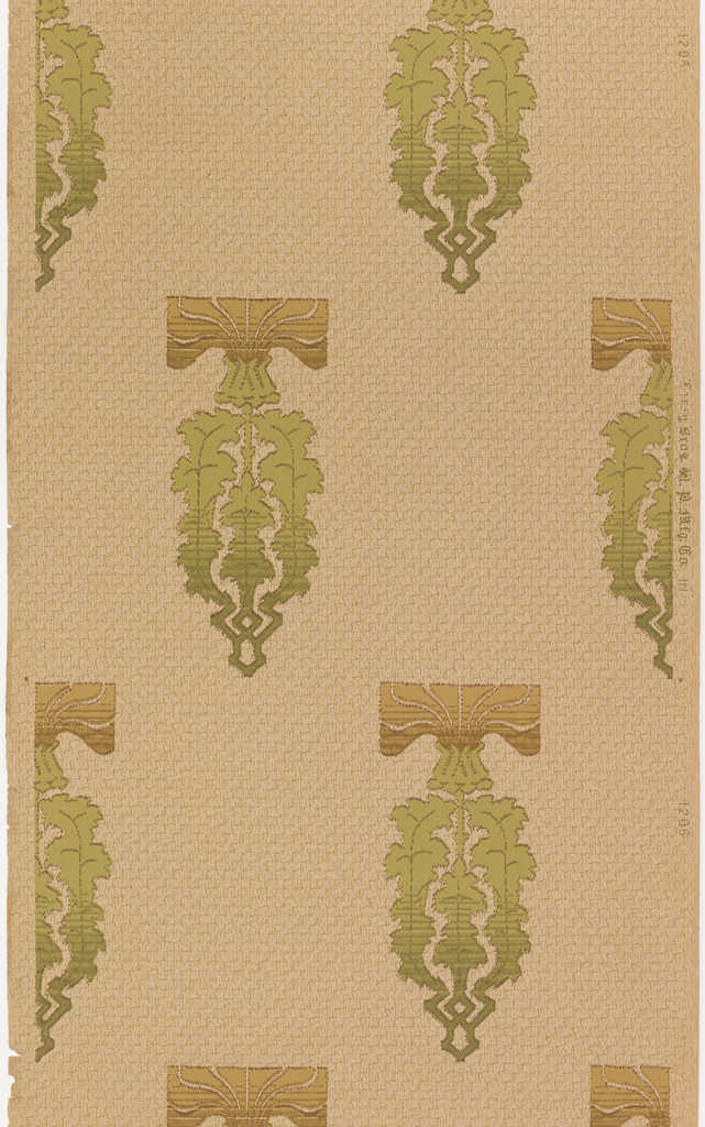 This is a Sidewall. It was manufactured by Carey Bros. W.P. Mfg. Co.. It is dated 1905–1915 and we acquired it in 1979. Its medium is machine-printed paper. It is a part of the Wallcoverings department.