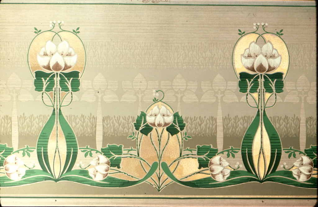 This is a frieze. It was manufactured by Standard Wall-Paper Company. It is dated 1905–1915 and we acquired it in 1979. Its medium is machine-printed paper. It is a part of the Wallcoverings department.