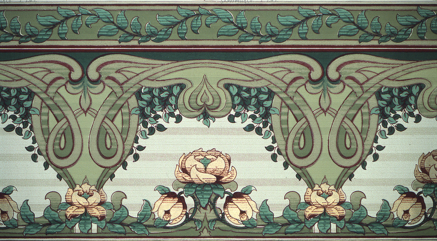 This is a frieze. It was distributed by Maxwell & Co., S.A.. It is dated 1905–1915 and we acquired it in 1979. Its medium is machine-printed paper. It is a part of the Wallcoverings department.