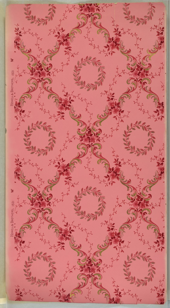 This is a Ceiling paper. It was manufactured by Howell and Brothers. It is dated 1905–1915 and we acquired it in 1979. Its medium is machine-printed paper, liquid mica. It is a part of the Wallcoverings department.