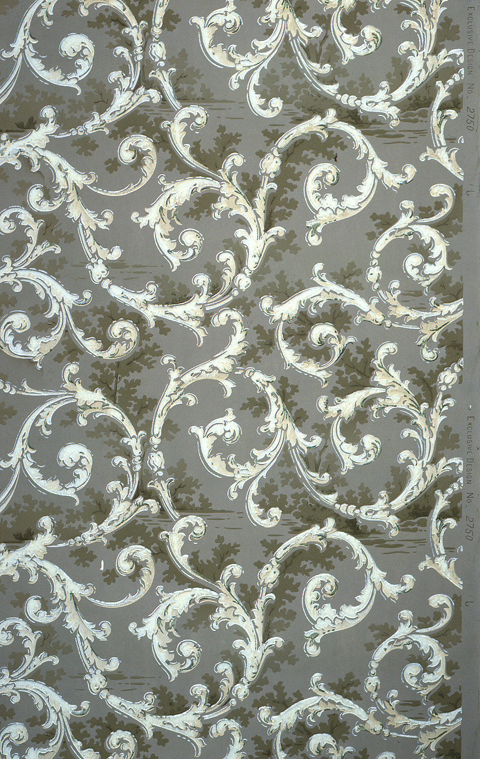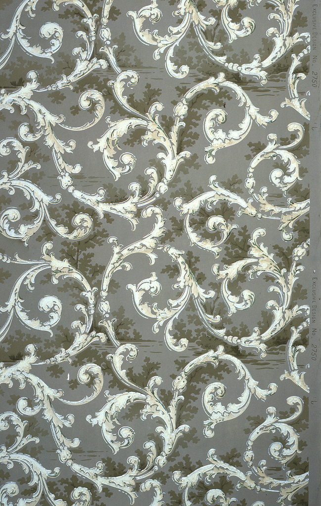 This is a Sidewall. It was distributed by S.A. Maxwell & Co.. It is dated 1905–1915 and we acquired it in 1979. Its medium is machine-printed paper, liquid mica. It is a part of the Wallcoverings department.
