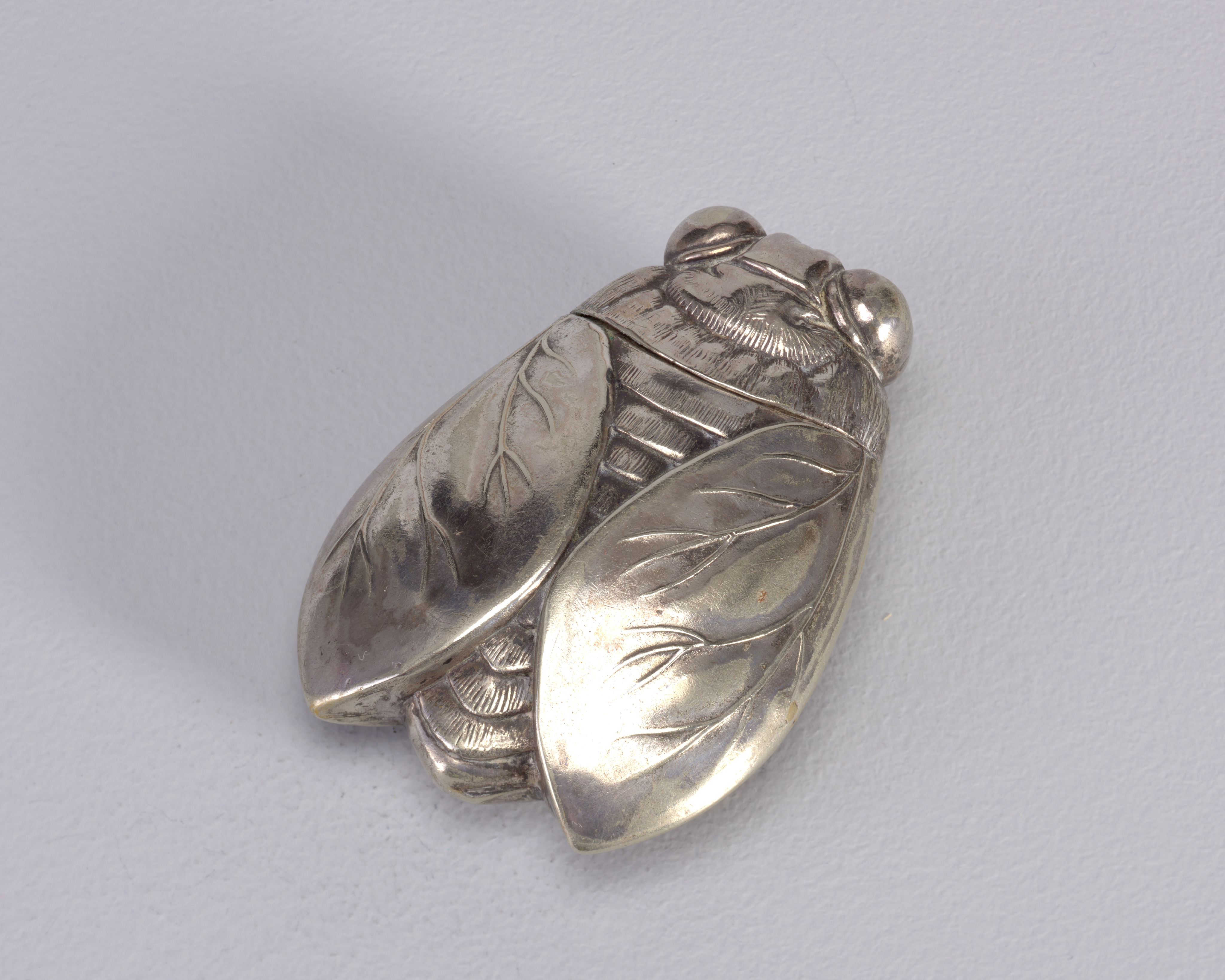 Matchsafe in the form of a Cicada Matchsafe; probably Japan; plated metal; 6.5 x 4.8 x 1.7 cm (2 9/16 x 1 7/8 x 11/16 in. ); Gift of Stephen W. Brener and Carol B. Brener; 1980-14-1311