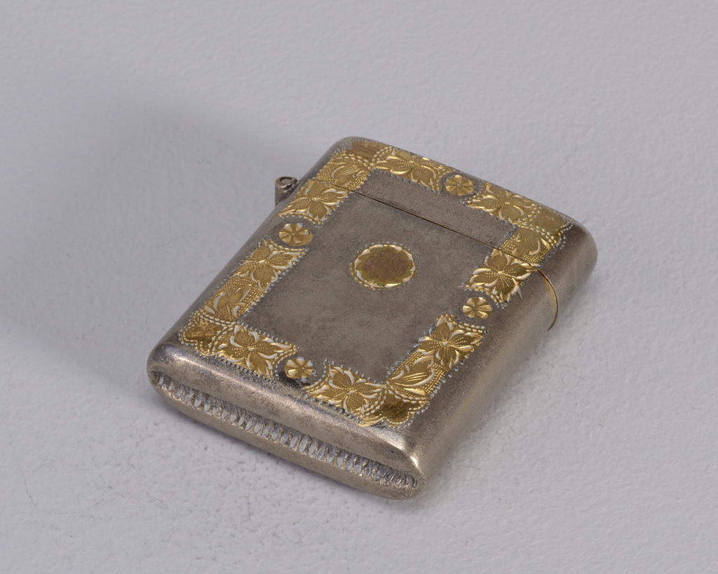 This is a Matchsafe. We acquired it in 1980. It is a part of the Product Design and Decorative Arts department.