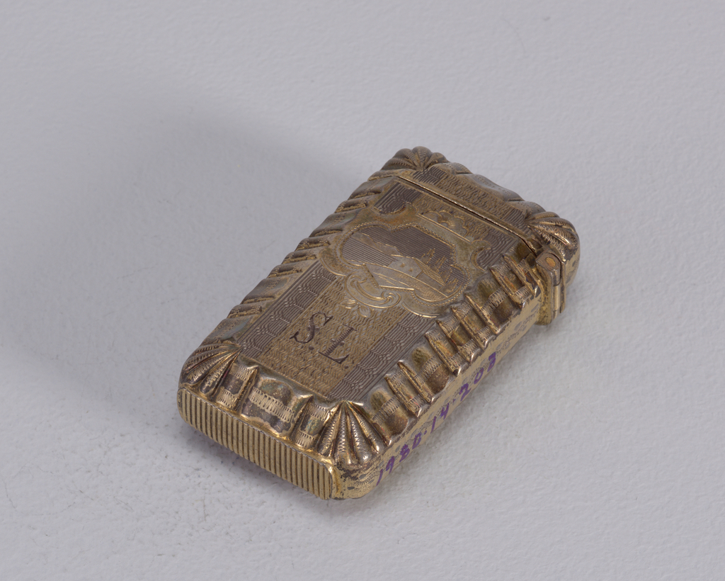 This is a Matchsafe. We acquired it in 1980. Its medium is silver. It is a part of the Product Design and Decorative Arts department.