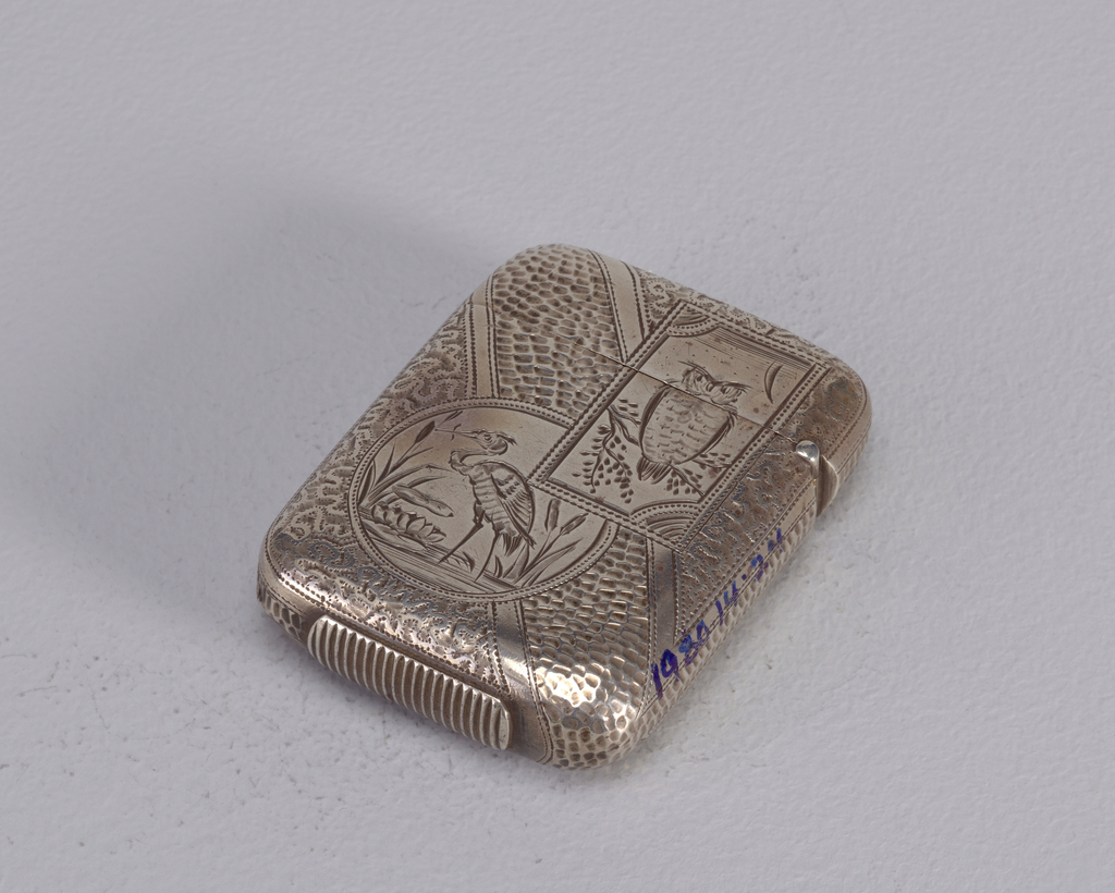 Aesthetic Style with Birds Matchsafe; Probably Sampson Mordan & Company; England; silver; 6.1 x 4.9 x 1 cm (2 3/8 x 1 15/16 x 3/8 in. ); Gift of Stephen W. Brener and Carol B. Brener; 1980-14-24