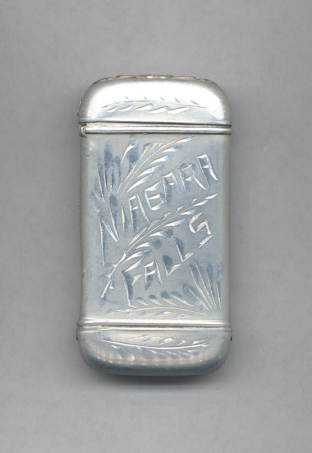 "Niagara Falls" Matchsafe; USA; aluminum; 7 x 3.7 x 1.2 cm (2 3/4 x 1 7/16 x 1/2 in. ); Gift of Stephen W. Brener and Carol B. Brener; 1980-14-746