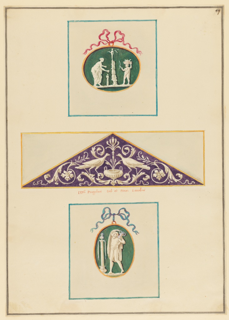 This is a Drawing. It was created by Michel Angelo Pergolesi. It is dated 1776 and we acquired it in 1980. Its medium is pen and ink, brush and watercolor, gouache, over graphite on laid paper. It is a part of the Drawings, Prints, and Graphic Design department.