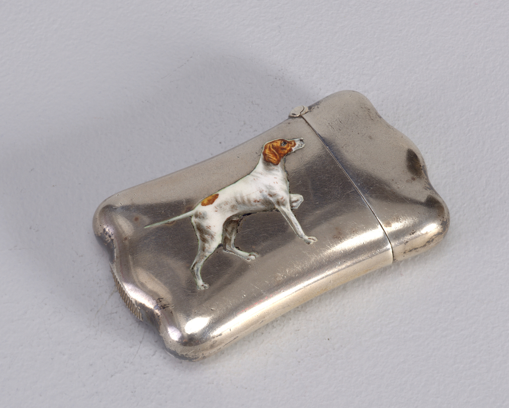 This is a Matchsafe. We acquired it in 1982. Its medium is silver. It is a part of the Product Design and Decorative Arts department.