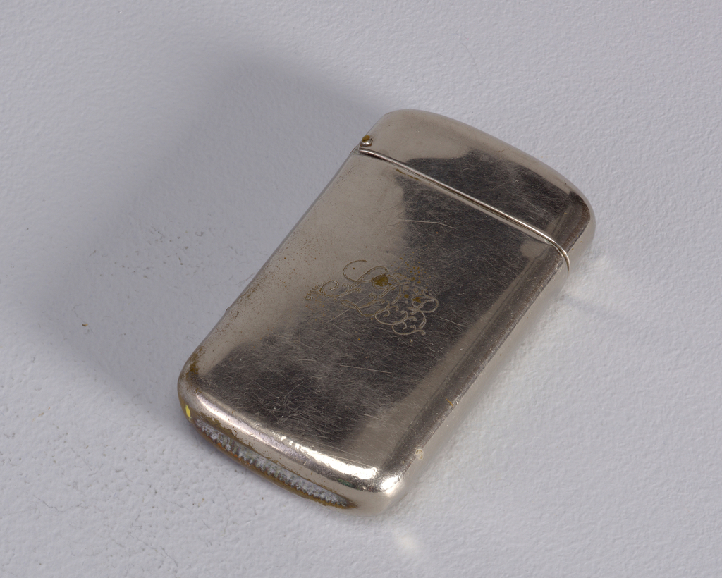 This is a Matchsafe. We acquired it in 1982. Its medium is silver. It is a part of the Product Design and Decorative Arts department.