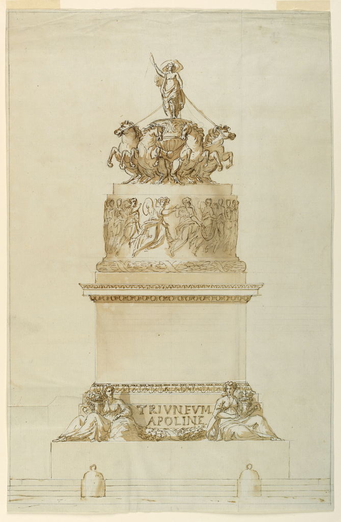Drawing, Elevation of a sundial; Architect: Giuseppe Barberi (Italian, 1746–1809); Italy; pen and brown ink, brush and brown wash, graphite; Image: 48 x 31.5 cm (18 7/8 x 12 3/8 in.); Museum purchase through gift of various donors and from Eleanor G. Hewitt Fund; 1938-88-2957