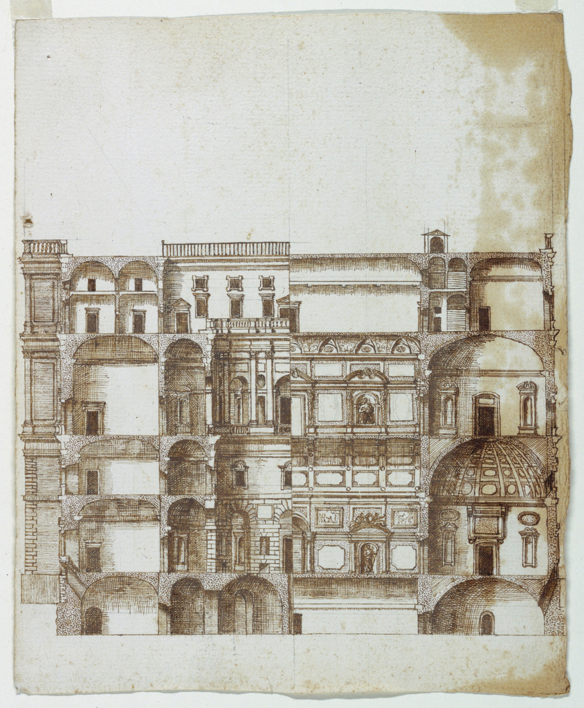 Drawing, Design for a large palace; Italy; pen and bistre ink; Museum purchase through gift of various donors and from Eleanor G. Hewitt Fund; 1938-88-3413
