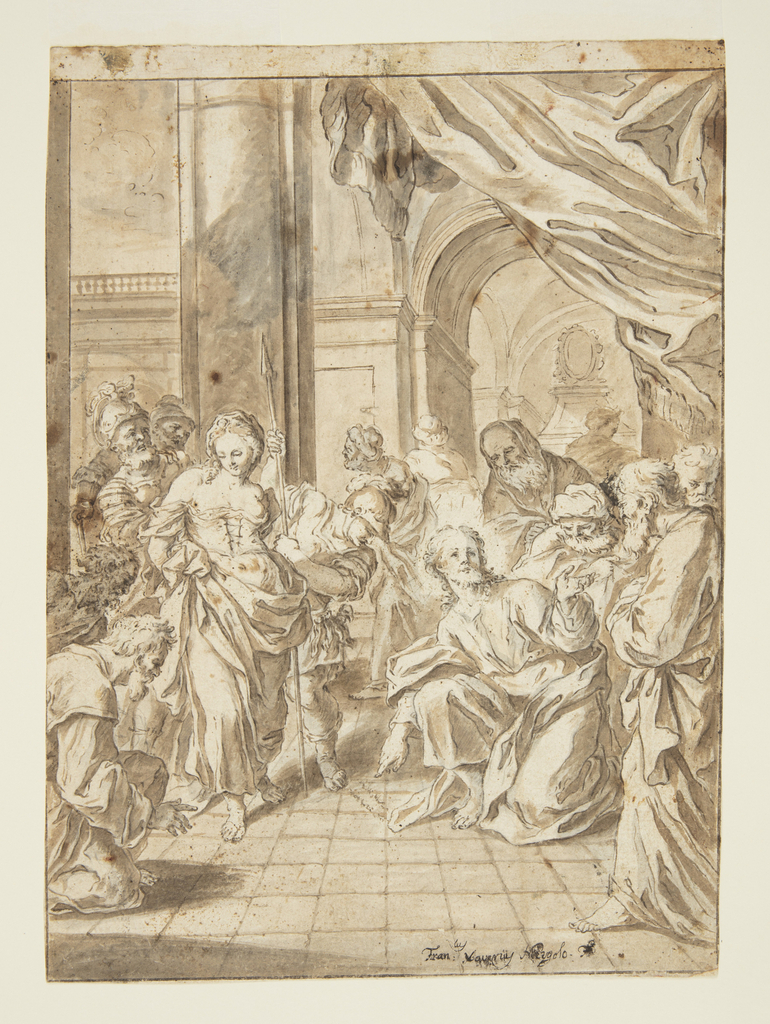 Drawing, Christ and the Adulterous Woman; Francesco Saverio Mergolo (Italian, 1746–1786); Italy; brush and gray wash, pen and brown ink, graphite on paper; 34.6 x 25 cm (13 5/8 x 9 13/16 in.); Museum purchase through gift of various donors and from Eleanor G. Hewitt Fund; 1938-88-4379