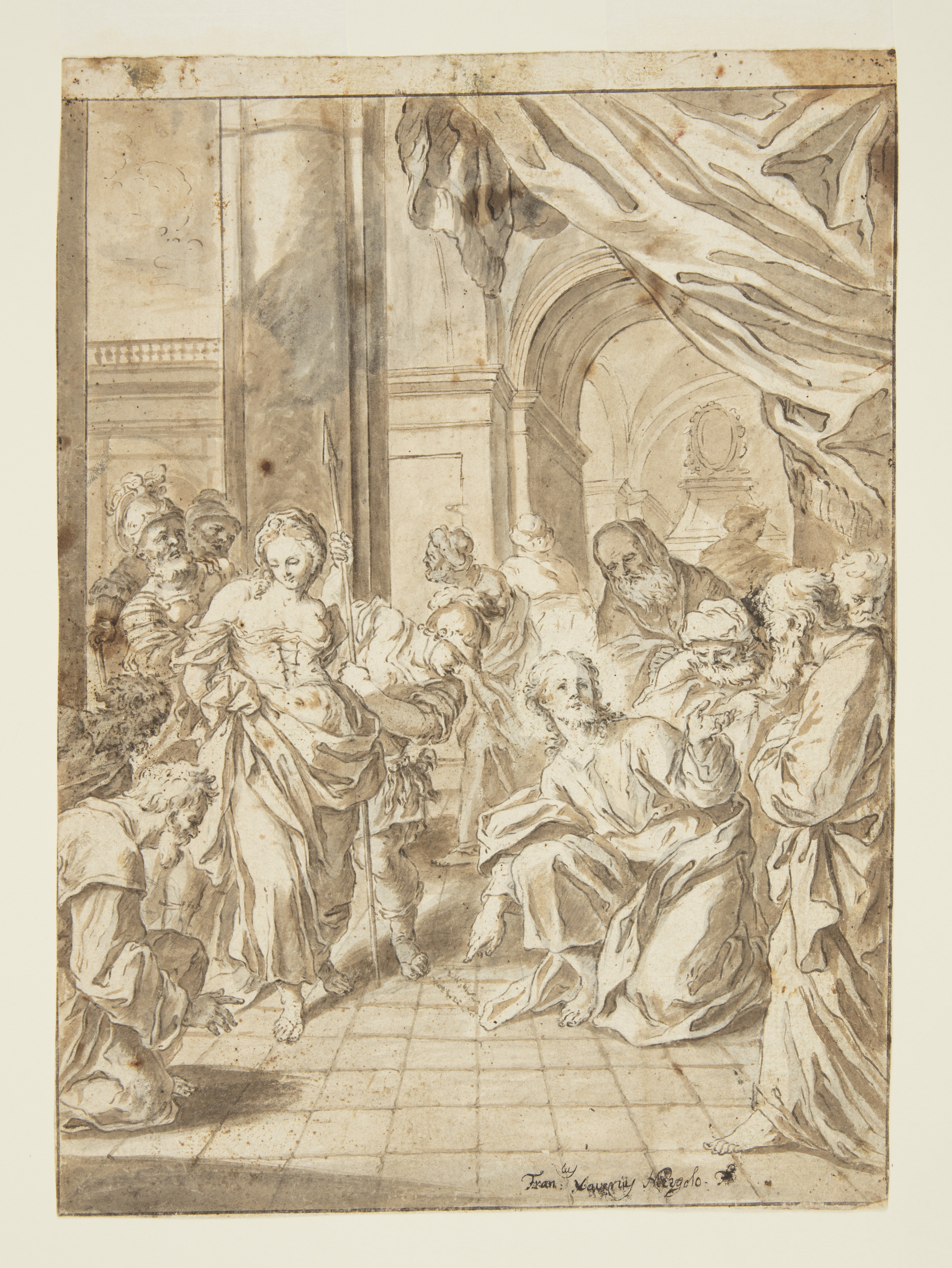 Signed in pen and brown ink, lower right: Francus Xaverius Mergolo F.