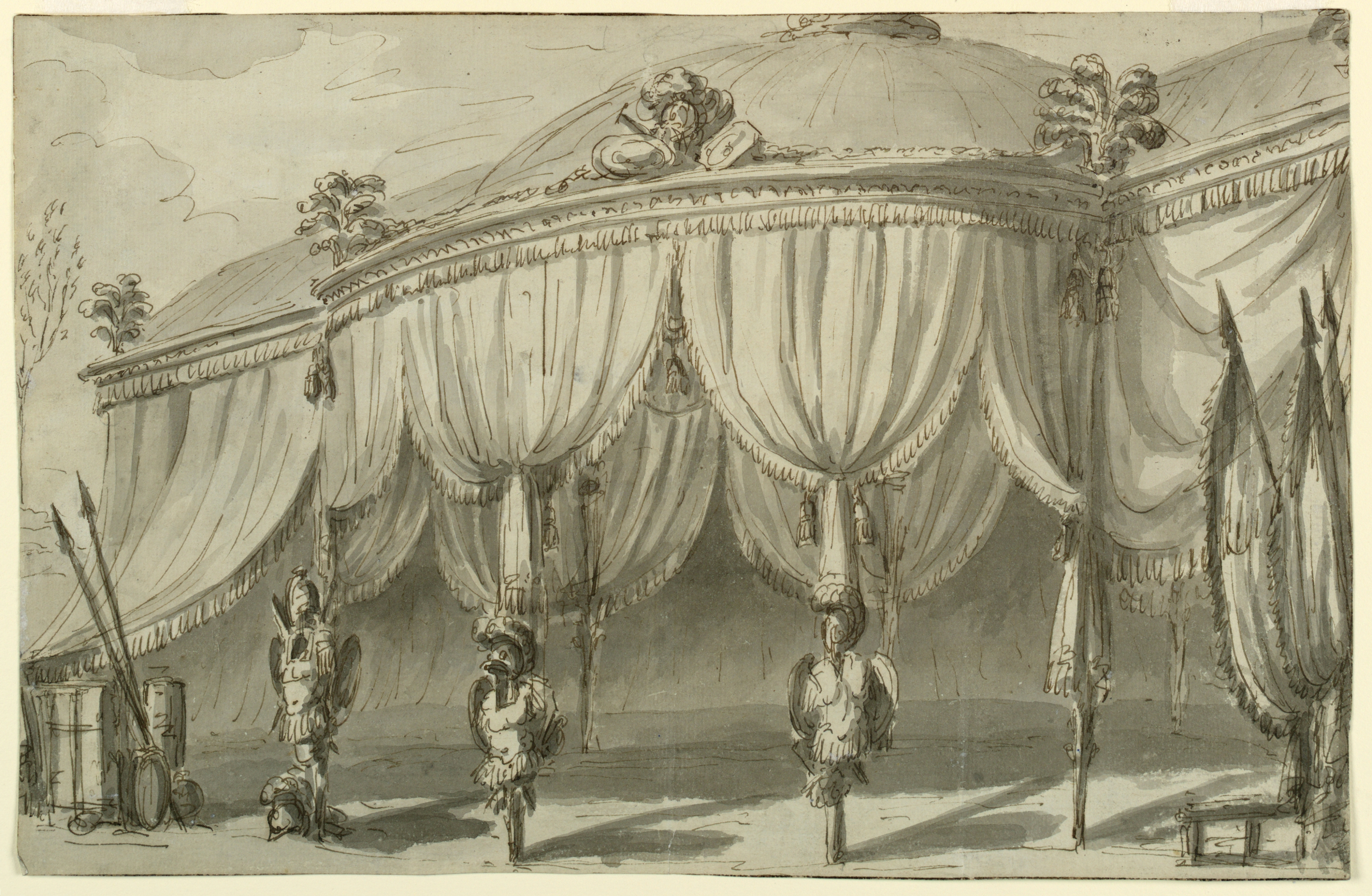 Drawing, Stage Design, A Pavilion with Trophies of War